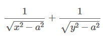 $$ \frac{a}{\sqrt{x^2-a^2}} + \frac{a}{\sqrt{y^2-a^2}} = \frac{a}{c} $$